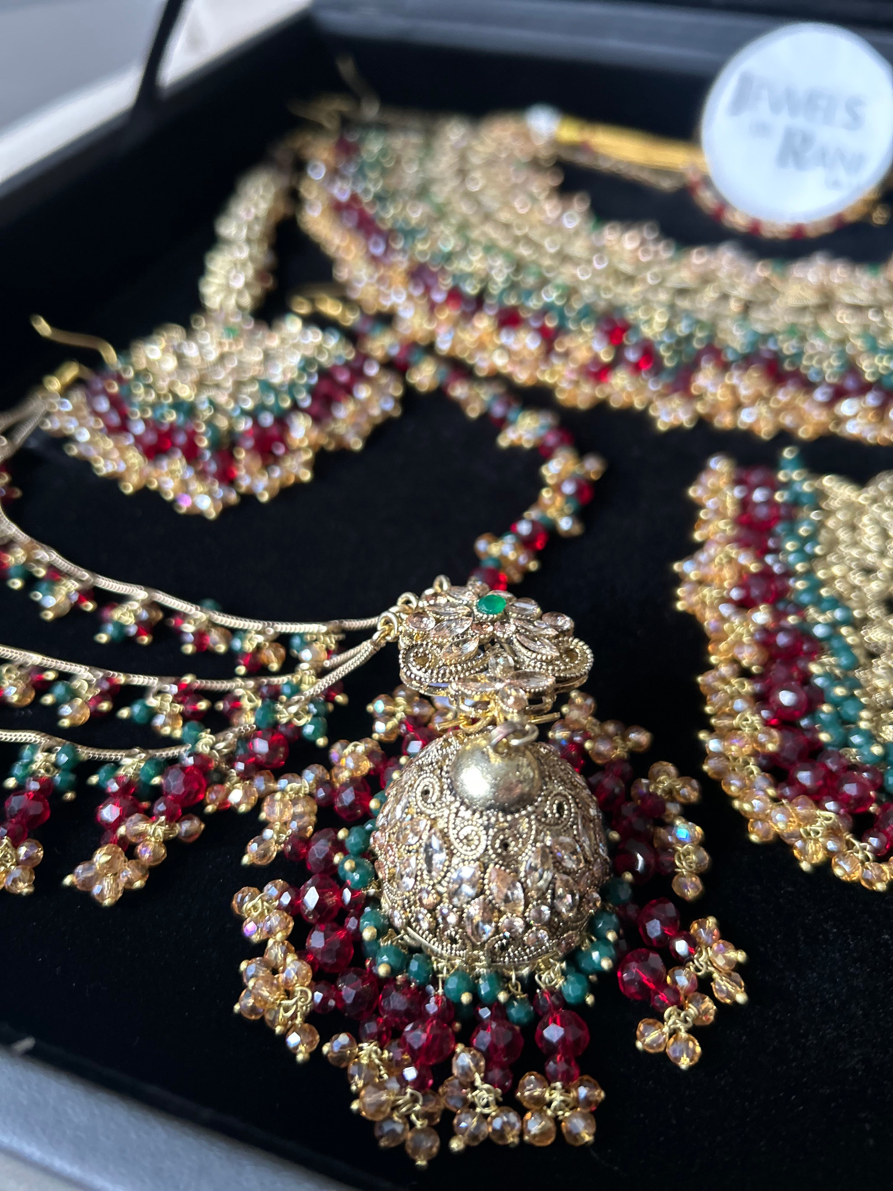 24 crt Gold Plated - Maroon Stones & Maroon and Gold beading - Bridal Jewellery Set